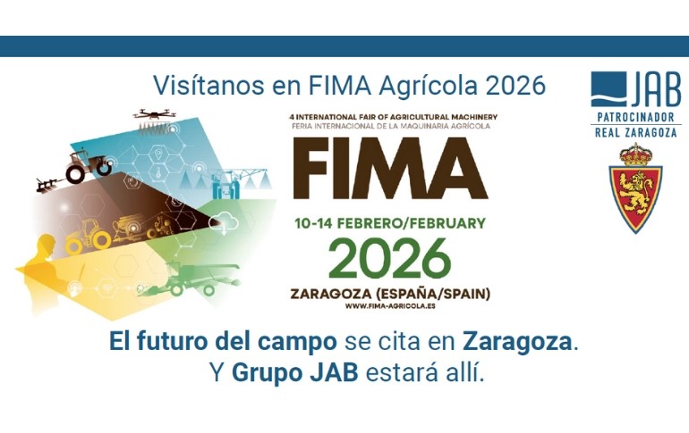 Grupo JAB estará presente en la 44ª edición de la Feria Internacional de Maquinaria Agrícola (FIMA Agrícola 2026), que se celebrará del martes 10 al sábado 14 de febrero de 2026 en Zaragoza, consolidándose una vez más como uno de los eventos de referencia del sector agroalimentario en el sur de Europa.