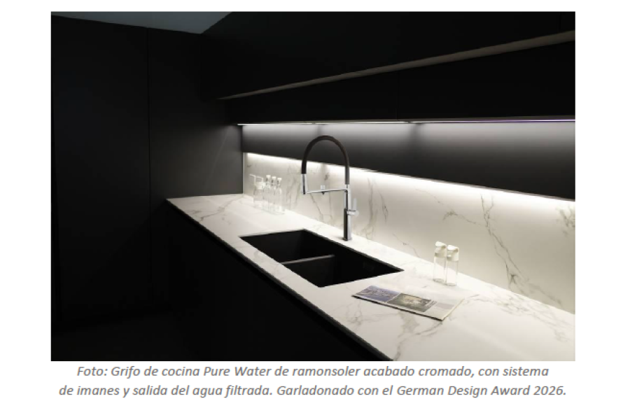 El innovador grifo de cocina Pure Water de ramonsoler ha sido distinguido con el German Design Award 2026, un reconocimiento que subraya su equilibrio entre diseño, ergonomía y compromiso medioambiental. Este modelo con filtrado integrado y retorno magnético ha cautivado al jurado por su estética contemporánea y su orientación hacia un consumo de agua más responsable.
