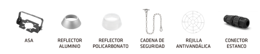 Su cuerpo está fabricado en aleación de aluminio de alta calidad, garantizando una excelente disipación térmica. Además, cuenta con protección IP65 / IK08 y 5 años de garantía, cumpliendo con los requisitos más estrictos para su instalación en entornos profesionales exigentes.