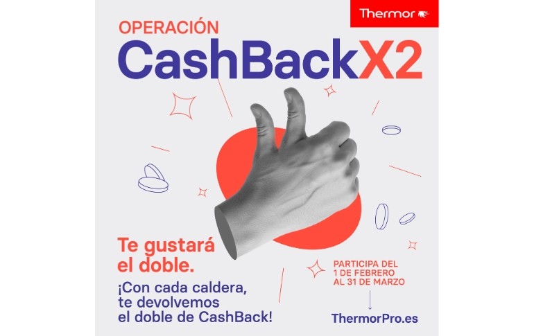 La marca THERMOR pone en marcha la Operación CashBack x2, una promoción exclusiva para empresas instaladoras con la que es posible recibir el doble del CashBack habitual por cada caldera Logic o Kompakt adquirida.