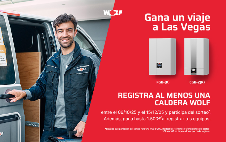 WOLF, marca líder en soluciones de calefacción de alta eficiencia energética, presenta su nueva promoción exclusiva para instaladores profesionales en España. Bajo el lema “Instala y gana un viaje a Las Vegas”, la firma refuerza su compromiso con los profesionales del sector incentivando la instalación de sus calderas de condensación y ofreciendo bonificaciones económicas junto con la posibilidad de disfrutar de una experiencia única en Estados Unidos.